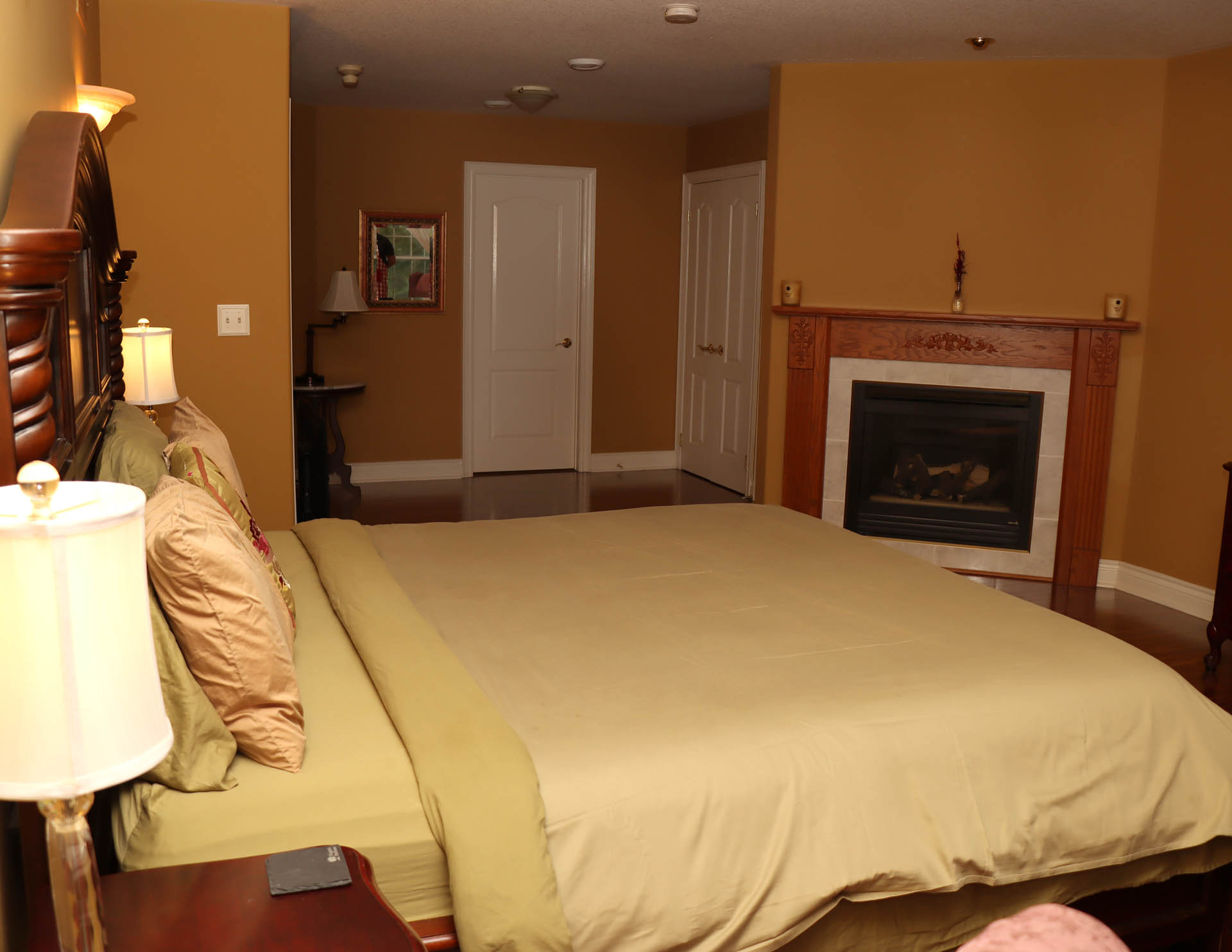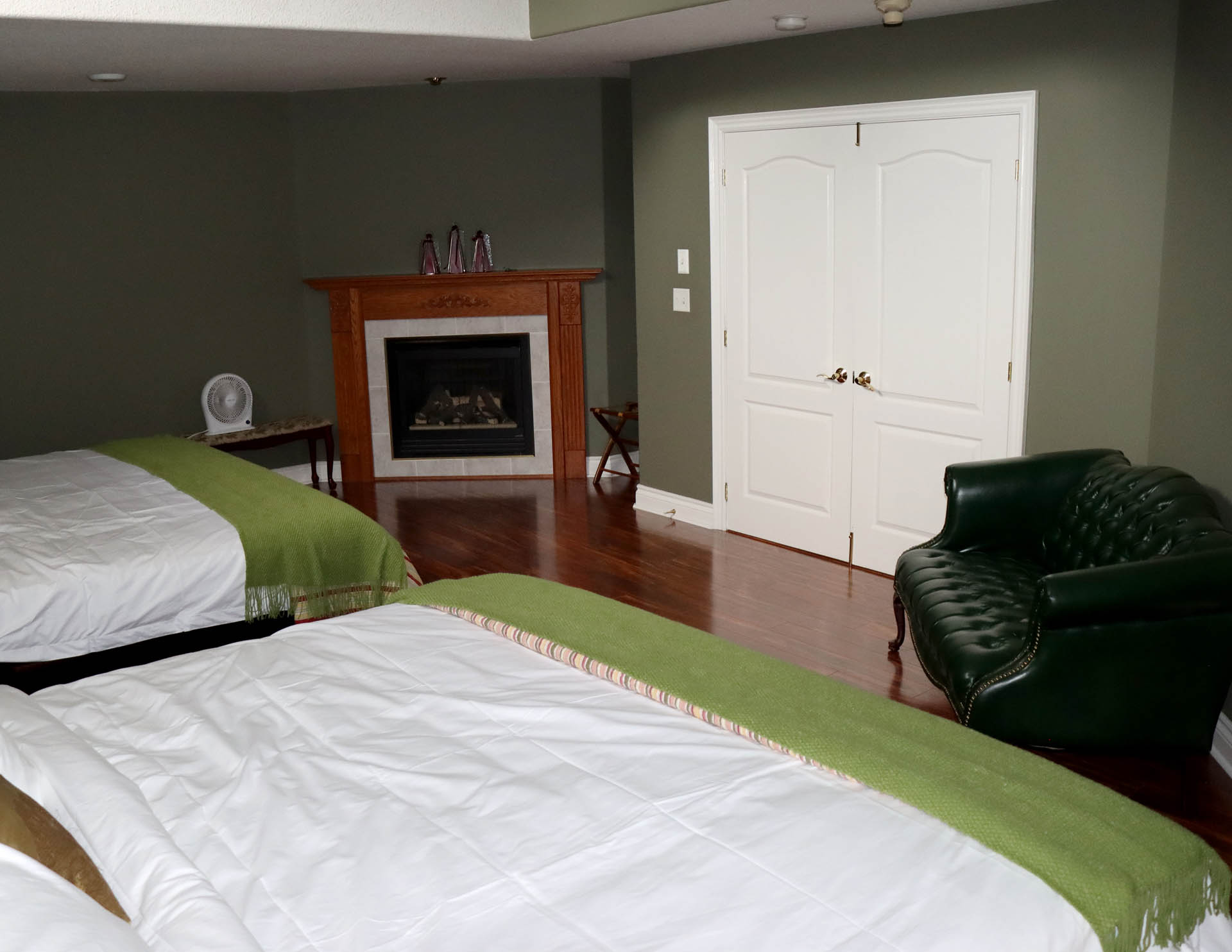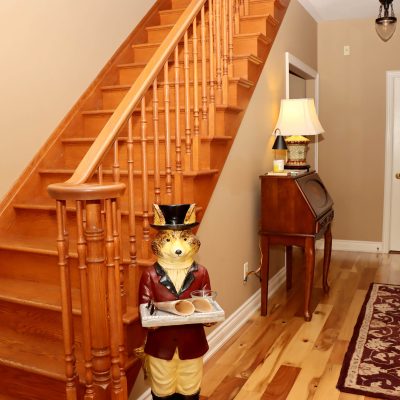 We currently offer two king sized rooms and one double king-sized room, each equipped with gas fireplace, 50-inch TV, mini-fridge, tea & coffee making facilities and free high speed Wi-Fi. At the moment all our guest rooms are on the second floor which involve one flight to stairs to access. Continental breakfast is served daily in our elegant dining room.
